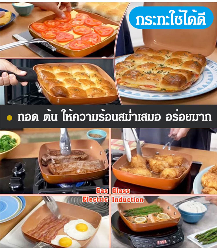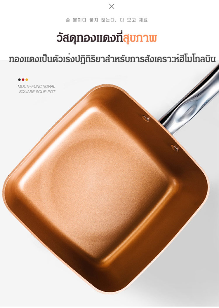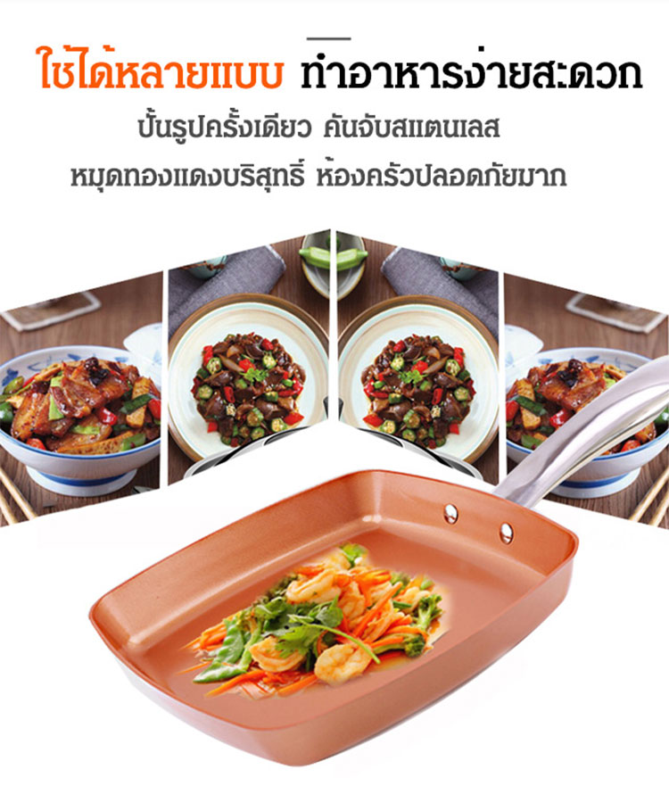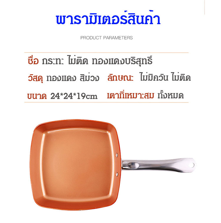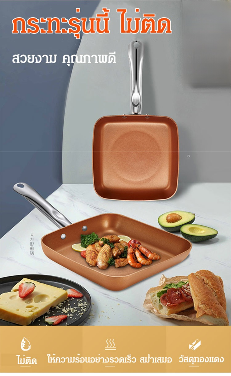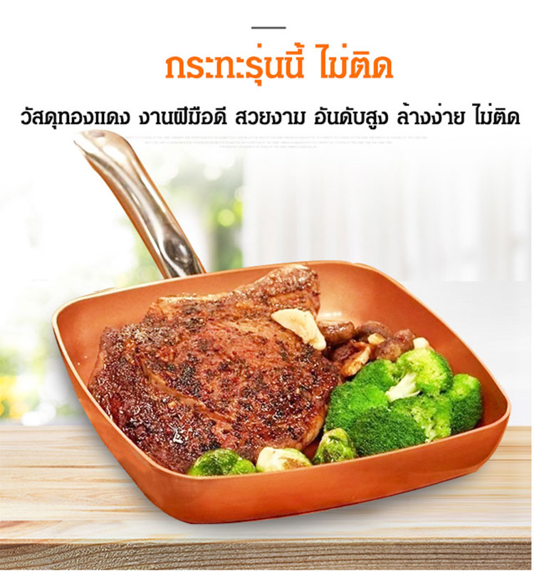 กระทะเทฟล่อนทองแดงไม่ติดอาหาร